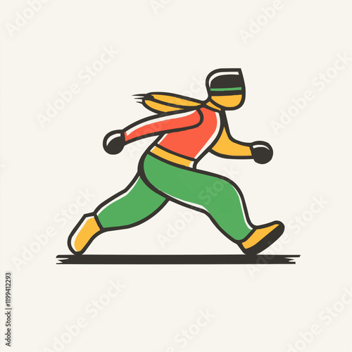 Winter Person Running Active Cold Weather Apparel. Vector Image