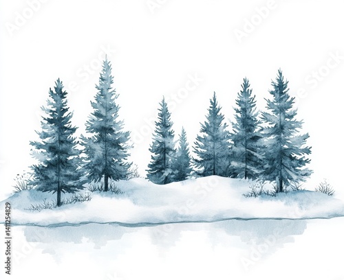 Winter pine tree forest digital art snowy landscape aerial view nature bliss isolate on white background