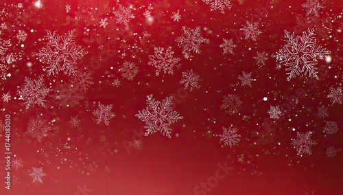 Winter scene with stylized snowflakes falling against a gradient crimson background