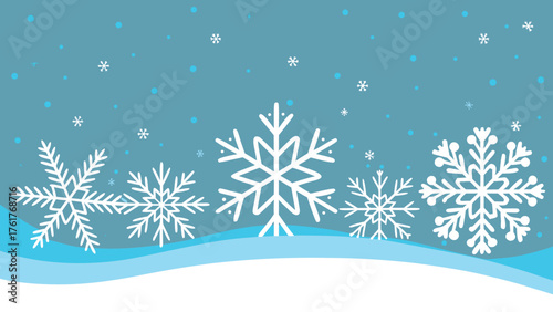 Winter Snowflakes and Snow Horizon