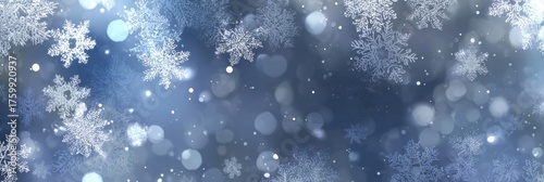 Winter snowflakes falling on a blue bokeh background