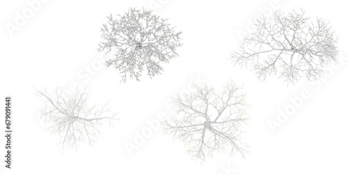 Winter tree on snow isolated in white background from top view