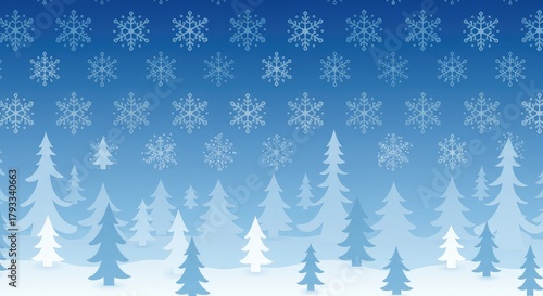 Winter Wonderland: Blue Forest with Snowflakes, Festive Holiday Background