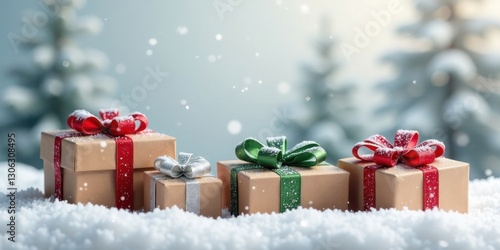 Winter Wonderland Presents A Festive Array of Wrapped Gifts in Snowy Landscape