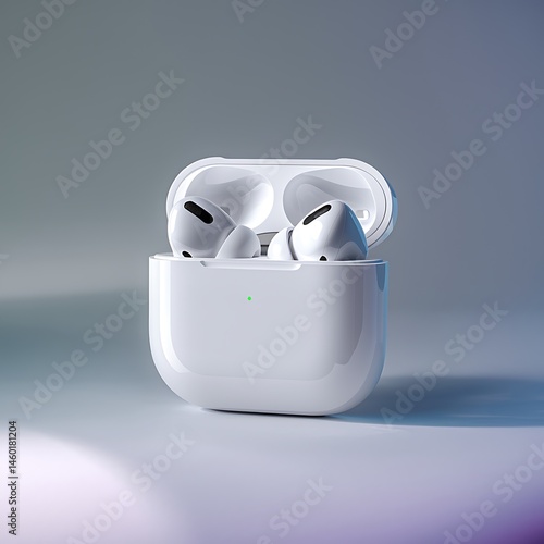 Wireless Earbuds in Charging Case Minimalist White Design. White Blank Earbuds. Earbuds Mockup.