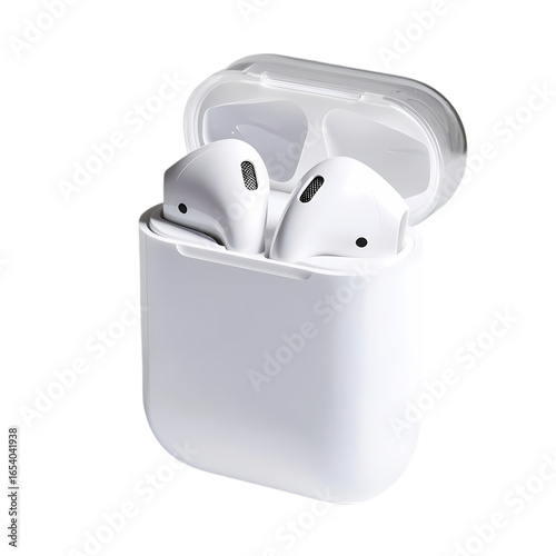 Wireless Earbuds in Charging Case: Product Shot on transparent background