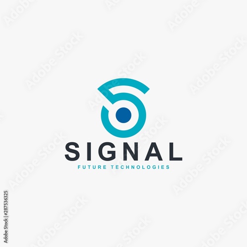 Wireless signal logo design vector. Letter S outline logo. Signal illustration. Blue colors logo design.