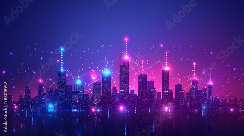 Wireless Technology: A 3D vector illustration of a city skyline