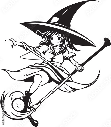 witch with broom illustration vector silhouette