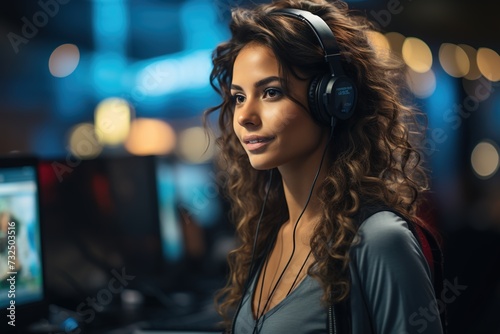 With a determined demeanor, a diligent female call center agent is fully dedicated to addressing customer needs with utmost attention and care