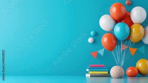 With balloons and banners, a teacher and pupils commemorate World Teachers Day.