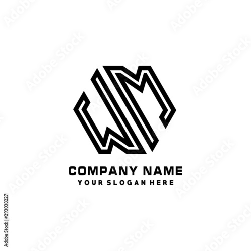 WM initial letters, hexagon logo minimalist art lines, black color