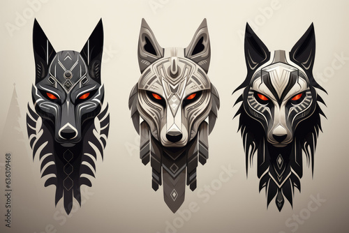 Wolf Totems Artistry in Cultural and Tribal Styles Created with Generative AI