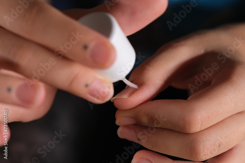 woman applying nail polish to her nails