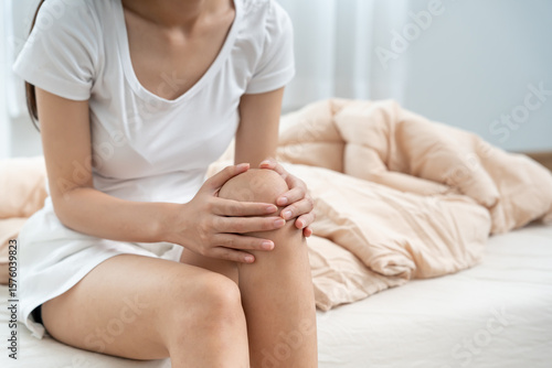 woman having knee injury due to ligament inflammation, knee pain due to exercise, massage, muscle relaxation, rheumatoid arthritis, gait disturbance, rheumatoid arthritis