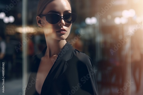 Woman in fashion luxury shop. Elegant fashionable lady in designer clothing collection store. Generate ai