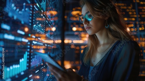 Woman in Server Room with Cell Phone