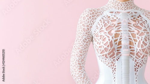 Woman, lace bodysuit, pink background, anatomy, fashion