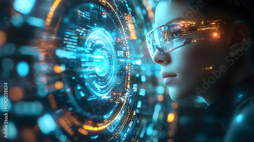 Woman Looking at Futuristic Interface Illustration