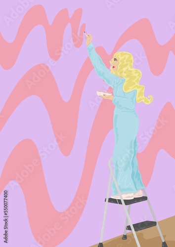 Woman painting wall mural