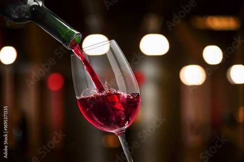 Woman pouring wine from bottle on bar background