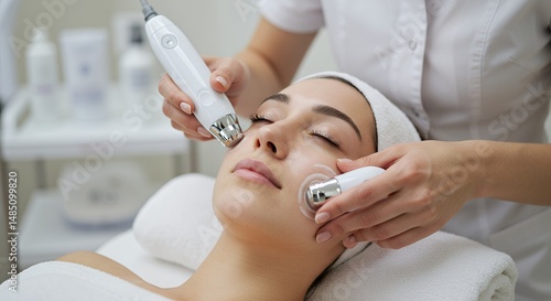 Woman Receives Serene Facial Treatment in Spa Close Up of Hands with Device Skincare and Relaxation Focus Beauty Cosmetic and Wellness for Decoration
