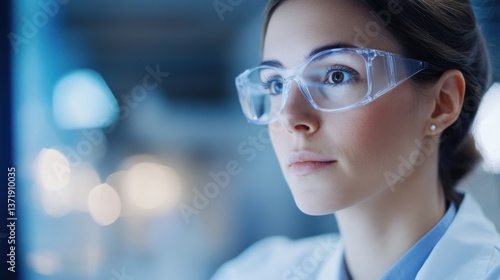 Woman scientist wearing safety glasses