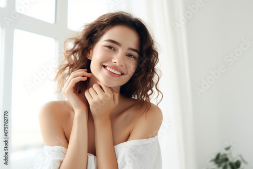 Woman slaves to skin care Nourish facial and body skin
