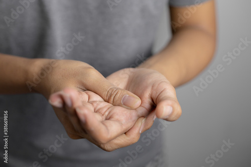 Woman suffering from pain in hand.