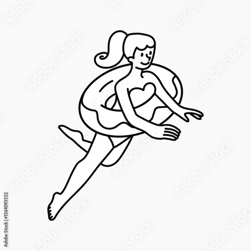 Woman swimming with floaty collage element vector