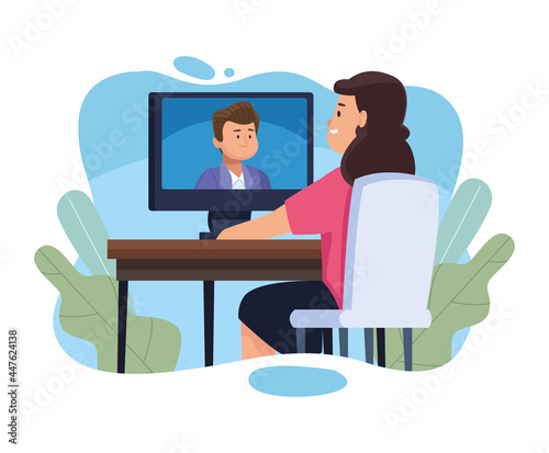 Woman with computer in video chat with man