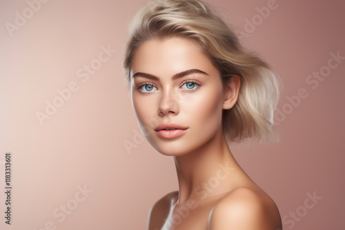 Woman with Flawless Skin and Copy Space for Personalized Message