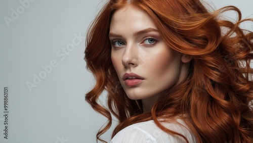 Woman with Long Curly Red Hair Portrait