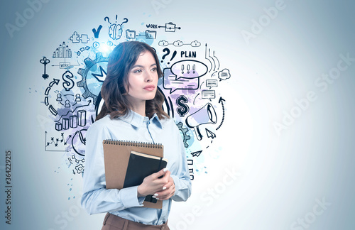 Woman with notebook and her business plan