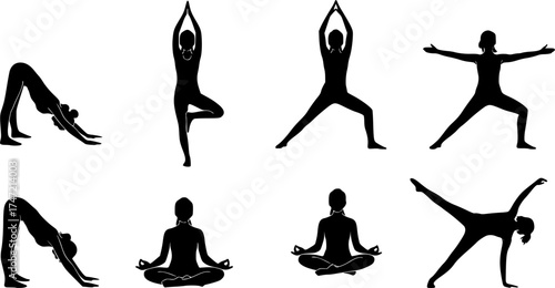 Woman yoga silhouettes, Yoga silhouettes collection set