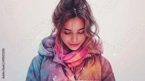 Woman young user of social nets spreads likes trough mobile phone. Abstract concept. Banner or commercial advertisement illustration