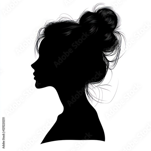 Woman's Profile Silhouette, Hair Bun, White Background, Elegant Design, Avatar Use.