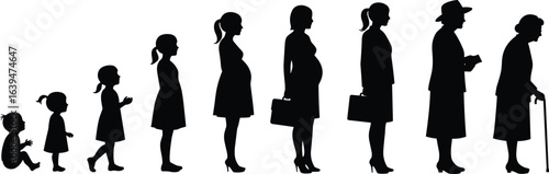 Women life stages, female growth, aging women, childhood to old age, women silhouette progression, pregnancy, motherhood, elderly woman, female evolution, life journey