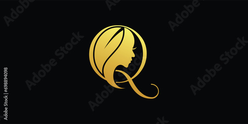 women's beauty and health logo letter Q, with gold color. vector