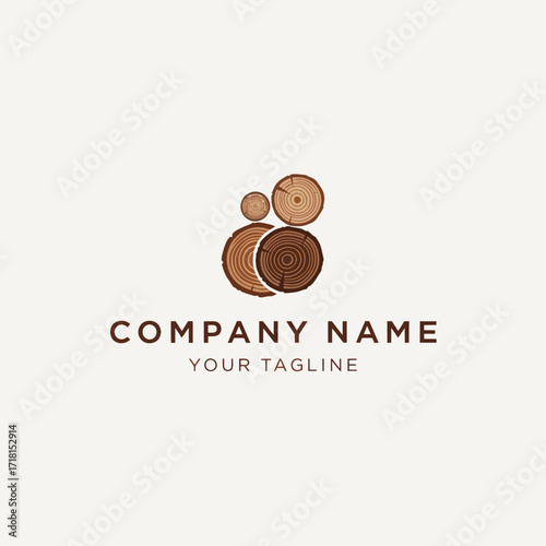 Wood Slices Logo Design with Tree Rings and Company Text on a Light Neutral Background, Flat Vector Elements, Vector Illustration, Simple Vector, Stylized Vector Drawing, Vector Template, Clean