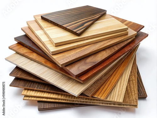 Wood Texture Sheets, Stacked Wood Samples, Natural Wood Background, Wood Grain Close Up, Pile of Wooden Boards, White Background Wood