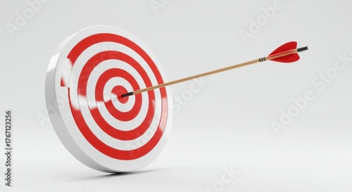 Wooden arrow strikes the bullseye center of a red and white competition target