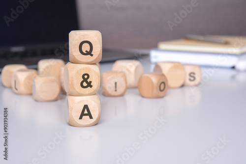 Wooden Blocks Featuring a QA Concept Displayed on a Modern, Stylish Desk Environment