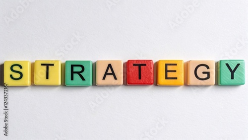 Wooden blocks forming the word strategy showcasing a creative business concept focused on planning and organization.