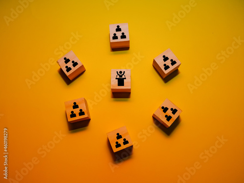 Wooden blocks with icon manager and employees. Business concept.