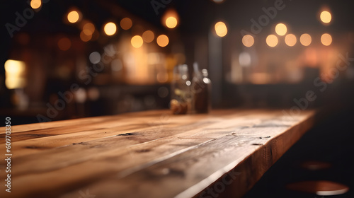 wooden board with blurred background for mockup application, generative ai