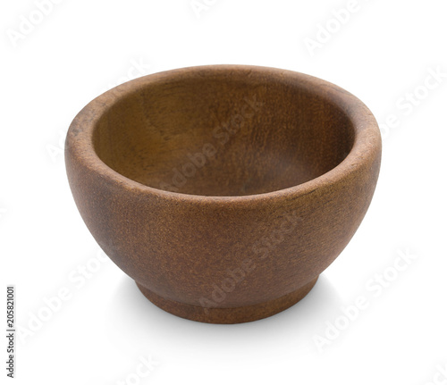 Wooden bowl on white background