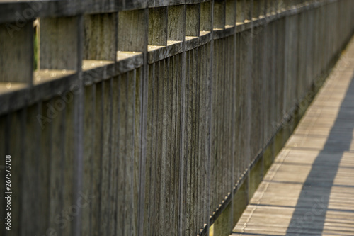 Wooden bridge. Wooden handrail. 木製の橋、木製の手すり