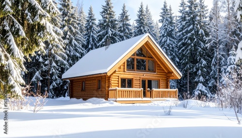 wooden cabin surrounded by snowy forest