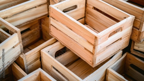 Wooden crates stacked together showcasing natural wooden texture and craftsmanship ideal for storage or decorative purposes.